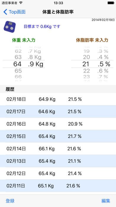 ・体重、体脂肪率の記録