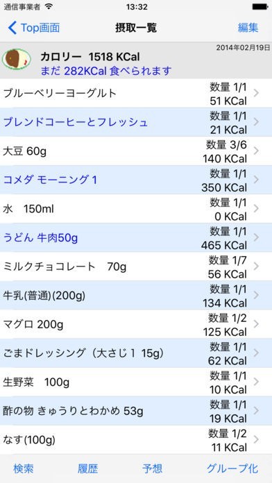 ・登録履歴からの摂取食品登録