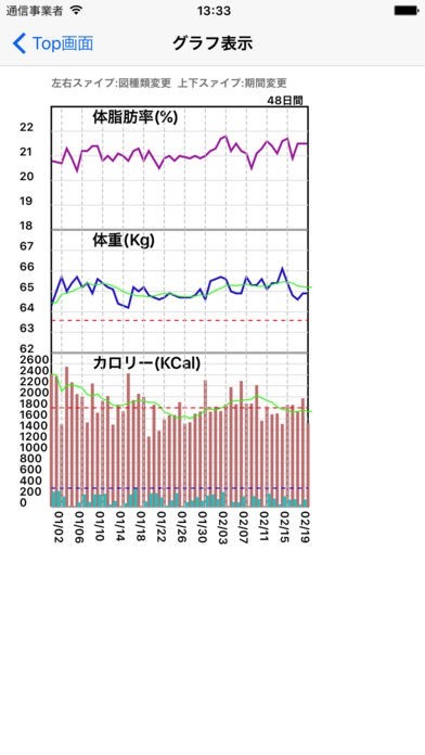 ・スワイプによるグラフ期間と種別選択(*新機能)