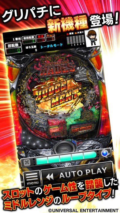 [グリパチ]CRアナザーゴッドハーデス アドベントは同名のパチンコ台をスマートフォンで完全再現したもので、お金をかけずに繰り返し遊ぶことができる点がポイントとなっています。