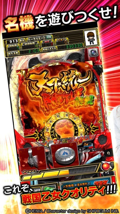 アプリでは実機を忠実に再現しており、スペックはもちろんのこと全ての演出や音楽が楽しめます。本作では新しい4人の武将が参戦しており、超美麗なグラフィック映像でかわいい乙女たちの活躍を見ることが出来ます。