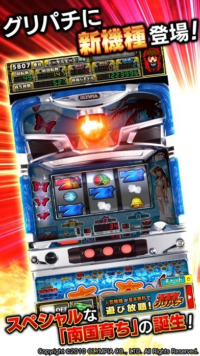 ボーナス・ART最後の8G間にすべてを濃縮した「南国育ちスペシャル」がついにグリパチに登場!新しく演出に追加されたリール逆回転が起きれば、大興奮の「無限南国チャンス」に突入!また、スペシャル南国モードへひとたび突入すればARTが終了しても引き戻しが続く?!しかも従来の南国育ちより出玉率も大幅UP!!誰もが納得のスペシャルな南国育ちをグリパチでお楽しみください