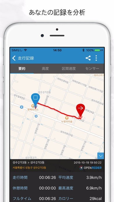 アプリを使えば、統計とマップによって走行記録が表示されます。あなたが走った場所、距離、時間がすぐに出てきます。走行記録を分析して、次回のバイク走行に活かしましょう。