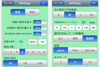 A:オン、B:オン、C:オン、先頭音符固定が一番簡単で、A:オフ、B:オフ、C:オフ、先頭音符フリーが難易度が高いです。設定により、いろんなタイプの練習方法ができます、いろいろと試してみてください。
