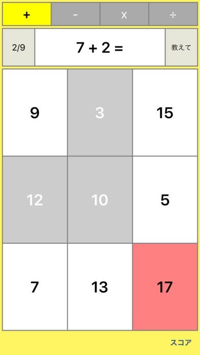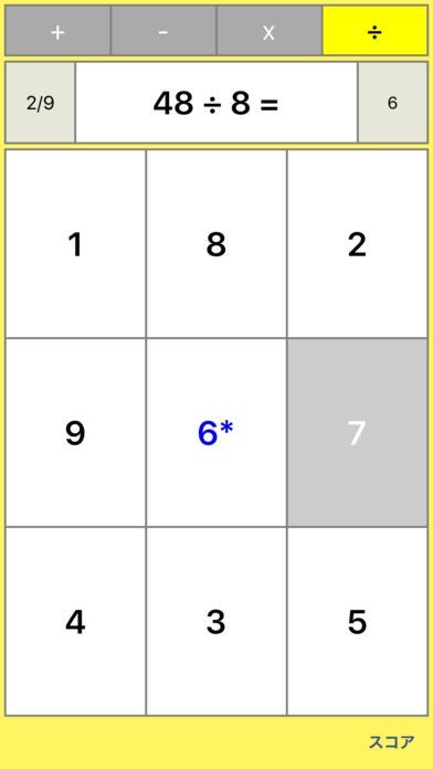 App Storeより引用「一桁四則演算」は、一桁数字の足し算、引き算、掛け算(九九)、割り算の答えを探すゲームです。 其々、9問づつの9ステージで81問をランダムに出題します。 一応タイムトライアルゲームですが、タイムを気にせずマイペースで脳トレにもいいでしょう。 一桁演算は算数の基本です、これらの計算が速くなるとなにかと僅かながら便利になると思います。 ちょっと算数脳を活性させましょう。