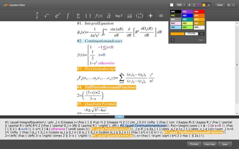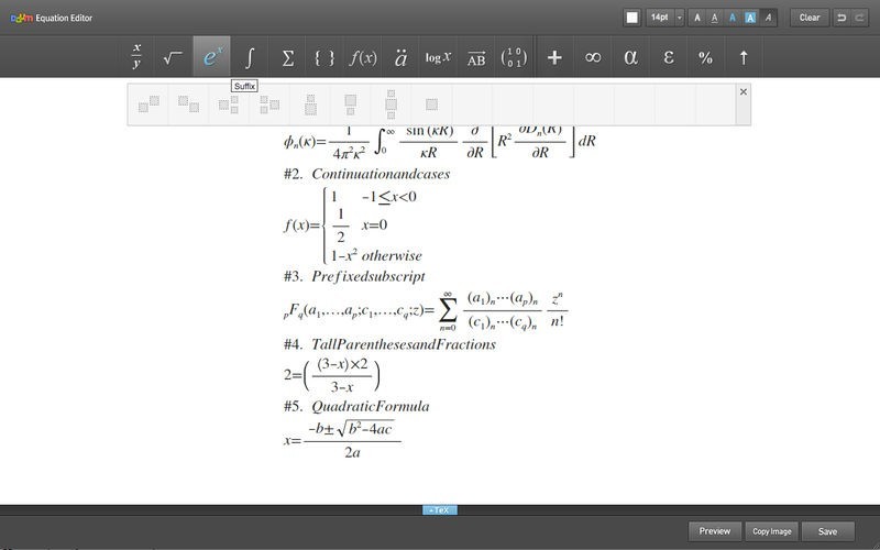 App Storeより引用Daumの数式編集機は簡単な数式から複雑な数式まで手軽かつ早く集機する為に製作されました。編集機で提供する多くの種類の数式達を利用し、ボタンをクリックするだけで、お望みの数式を作る事が出来ます。また、Tex入力機を通して入力されたTexを分析し、数式を作ってくれます。