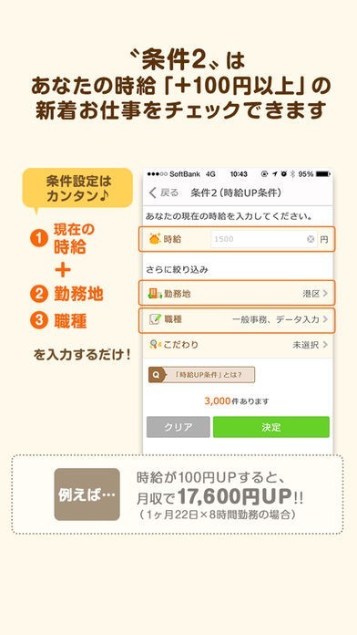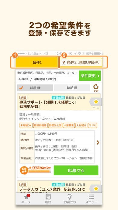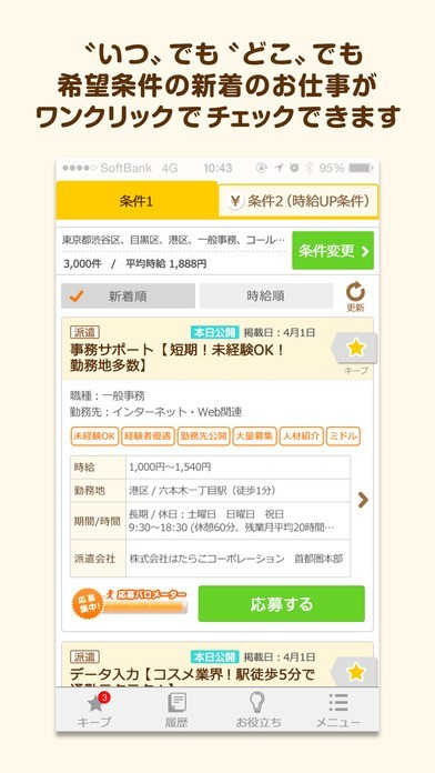 雇用形態や時給等の条件から自分好みの求人をピックアップ出来る