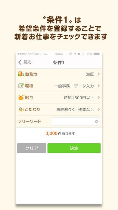 指定した条件に合わせて求人を検索出来るスマホアプリ