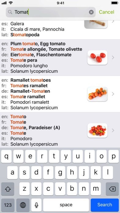 全ての食材が英語、フランス語、ドイツ語、スペイン語およびイタリア語で掲載されているので海外旅行の際に現地の言葉で書かれたメニューを見て何の料理か調べることができます。
