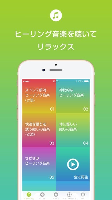 昼間の仕事で緊張してストレスで夜になっても眠れない方や勉強や仕事に集中したい時がある方にぜひ使っていただきたいこのアプリは眠るときにα波を発生しやすくなるのに効果的なヒーリング音楽や小川のせせらぎなどのサウンドが収録されているので寝付けない時やストレスの軽減に癒しの音楽を聞きながら心地の良い眠りに入っていくことができます。ヒーリング音楽は気に入った曲だけを繰り返すこともできるし全曲を繰り返すことも可能なので気に入った曲を聞きながら眠ることができます。小川のせせらぎのサウンドは時間を設定すると徐々に音を下げながら停止するのでせっかく眠れた睡眠を邪魔することはありません。