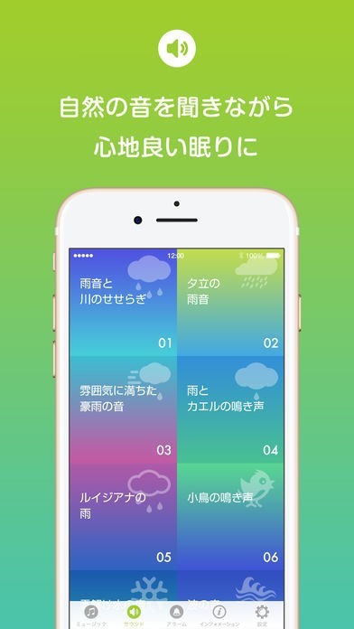 複数の環境音や自然音を収録していて、リラックスしたい時やストレスを軽減させたい時に重宝するでしょう。目覚ましアラームとしても利用出来るので、寝坊が多い方にも必見です。