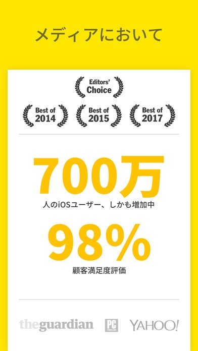 大変高い評価を受けているスキャンアプリです。700万人のユーザーが使用し、顧客満足度が98%という人気を博しています。部門別ベストにも2014〜2017と連続して選ばれています。そのスキャン性能は、まさしく評価通りの高画質です。
