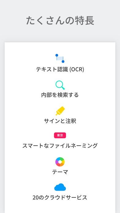 素早いスキャンとページの統合、エッジの検出といった、文章をまとめるための機能が充実しています。パスワードでロックもできますので、かさばる書類を電子化するにはピッタリです。