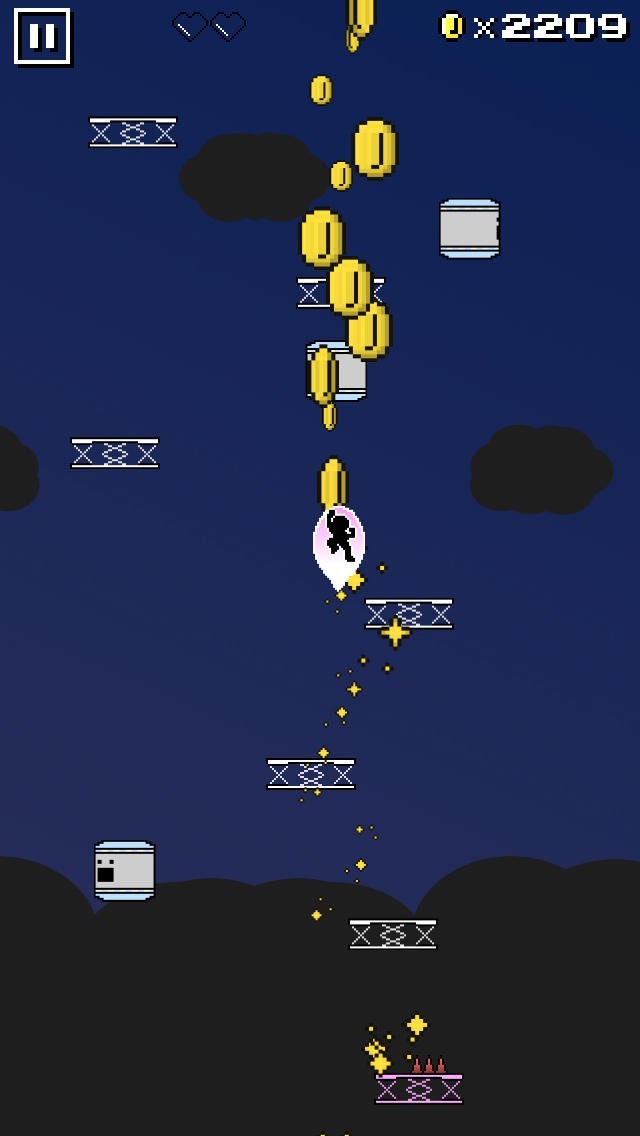 キャラクターを左右にジャンプさせてコインをゲットしていくゲームです。スマホを左右に傾けるだけのシンプルな操作なので、片手でも遊ぶことができます。足場から落ちてしまうとゲームオーバーなので、足場を確保しつつ上へ登りながらコインを集めていきます。障害物も登場するのでジャンプでうまく避けます。集めたコインはアイテムショップで使うことができ、キャラクターを強化することができます。世界ランキングに対応しているので、世界中のユーザーとコイン獲得数を競って盛り上がれます。少しの時間でも遊べますが、うまくなると何千枚ものコインを獲得できるようになるので、上級者はじっくりと時間をかけてプレイできます。