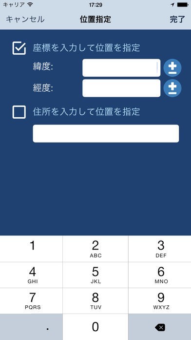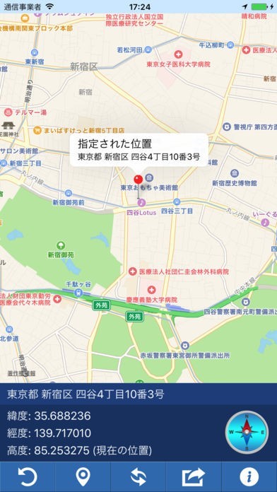 • アプリを実行すると、現在の位置情報を自動的に表示