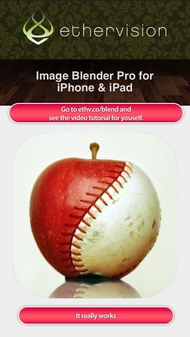 App Storeより引用Go to ethv.co/blend and see mind blowing gallery and video tutorials yourself. Magically blend images together!
