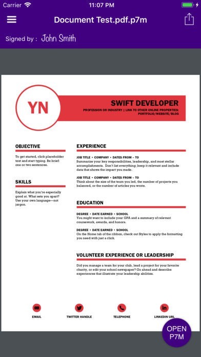 Open PDF PAdES signatures and PDF details (iOS 11 only).