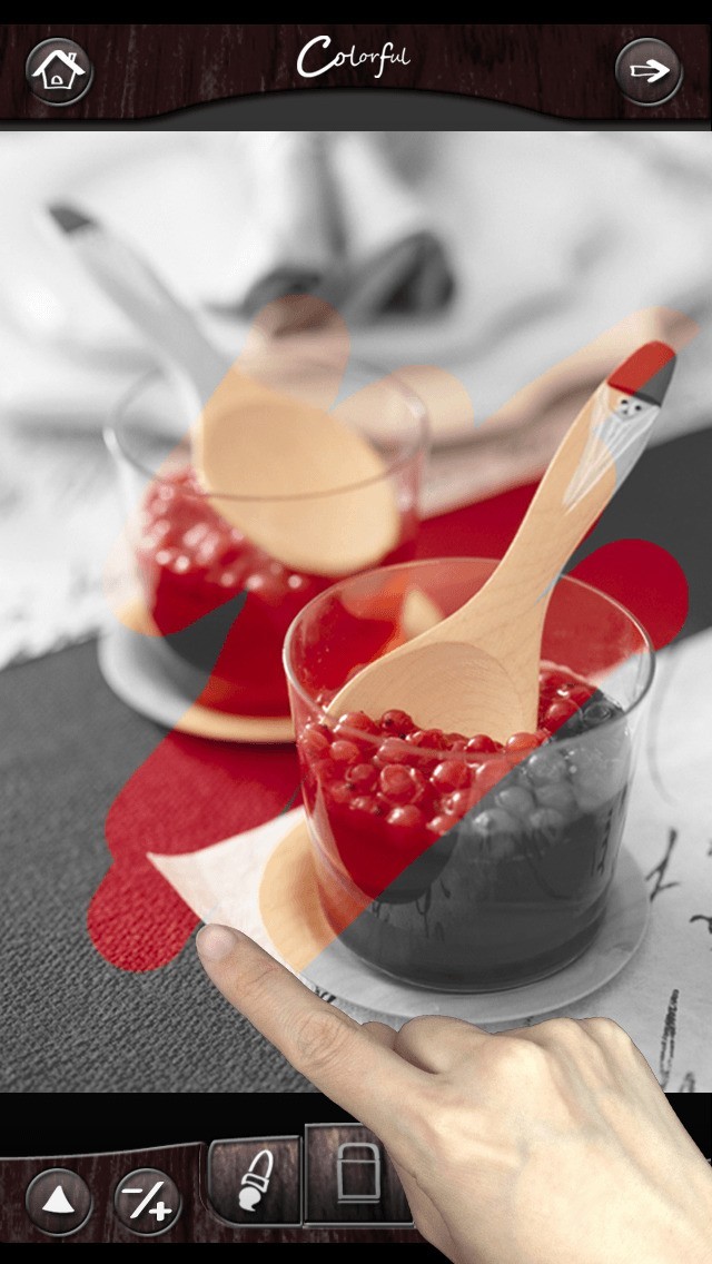 いつもの写真をモノクロやセピアにするだけでも雰囲気がでますよね。でも、目立たせたい一箇所に色を戻すことでさらにアーティスティックな写真にすることにできます。ペンのアイコンを選ぶだけの簡単操作です。