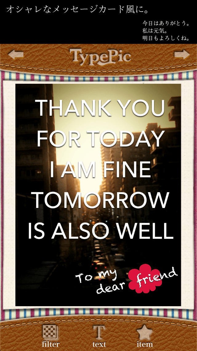 TypePic-文字入れ、フィルターの写真加工!無料の文字入力の画像編集アプリはフォントも豊富で写メに落書きを合成!のスクリーンショット