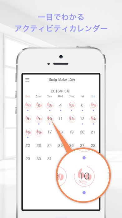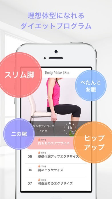 1日にたったの1分で効果がでるエクササイズを紹介してくれる「1日60秒で痩せよう!ボディメイクダイエット」は、目指したい体型に適したエクササイズを動画によって丁寧に説明してくれる他、体重の記録ができる機能があります。1日1分という短い時間で行うエクササイズは、痩せたい部位に対して確かに負荷はあるものの、またがんばれそうと思えるぐらいのものなので、これまでダイエットが続かなかった人でも気軽に取り組めます。また体重を記録する機能のおかげでエクササイズの効果が目に見えてわかってくるので、ダイエットを続けるモチベーションのアップにも役立ちます。