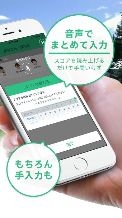 ラウンドしたスコア情報を音声で入力できます。1ホール毎に、スコアを手入力するような煩わしさはありません。快適なスコア入力環境をご提供します。