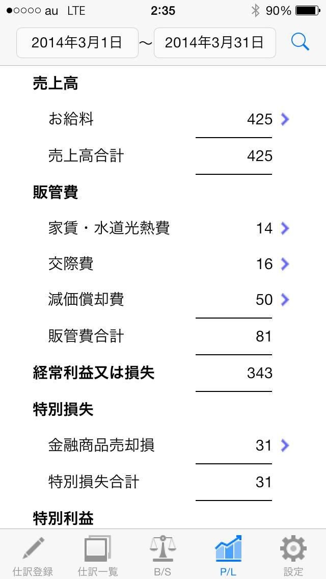 またこのアプリは同時に、損益計算書(P/L)の作成も行ってくれますので、今のあなたがどれだけの利益を生んでいるのか、はたまた損失を出してしまっているのかも一目瞭然になります。