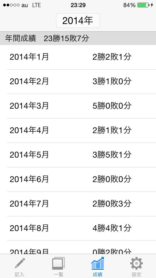 このアプリは過去の試合結果、月間成績、年間成績を見やすい形で表示してくれます。