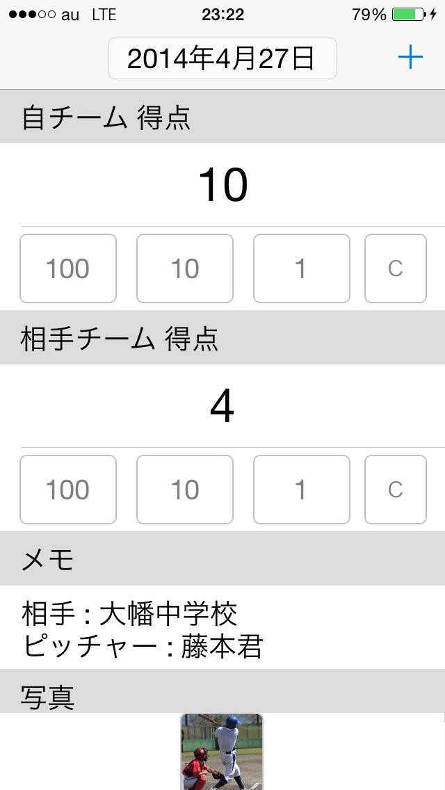 得点、写真、メモ、この3つの情報を入力するだけ。