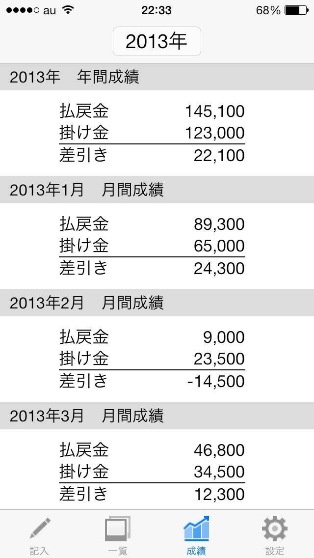 するとこのアプリが、月々の成績・年間の成績を集計してくれます。