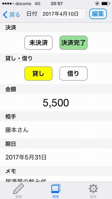 意外と忘れがちなお金の貸し借りもこれで忘れずに済んでいます。画面も分かりやすく使いやすいです。