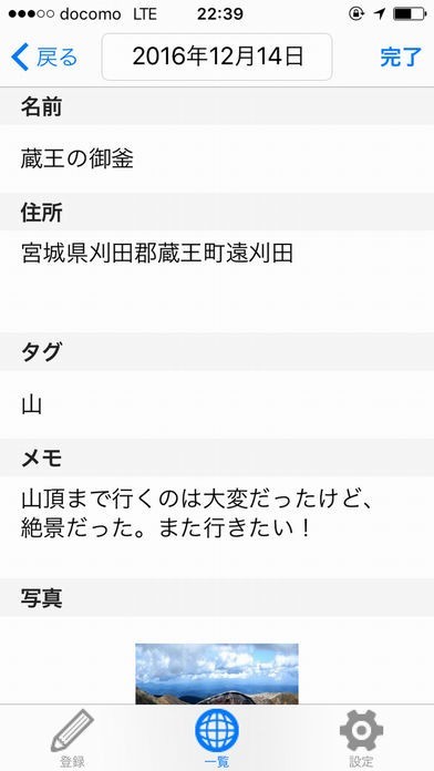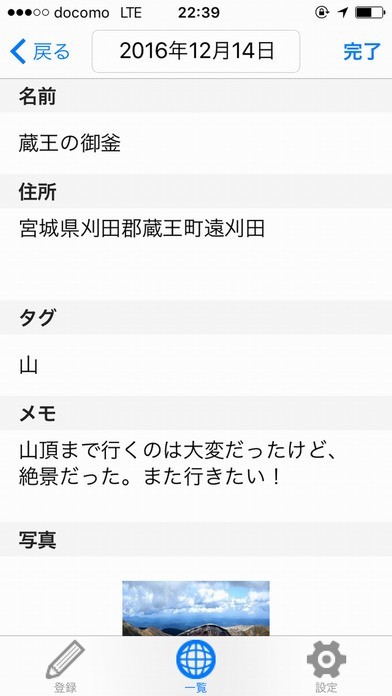 3. 各種情報を入力して、右上の「完了」をタップ