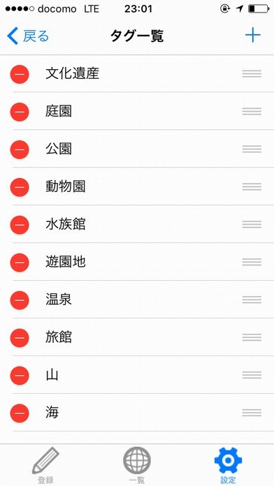 2. 「タグ一覧」をタップして、タグの追加・変更・削除ができる