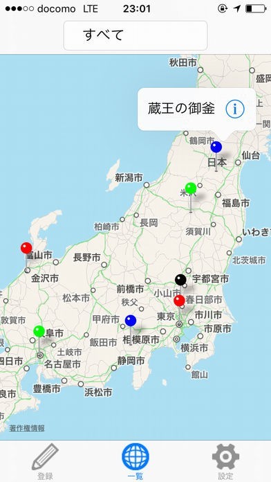 1. 登録したピンが自動で地図上に表示される