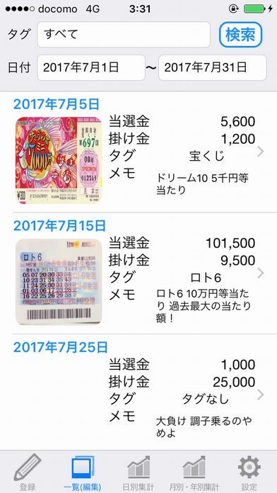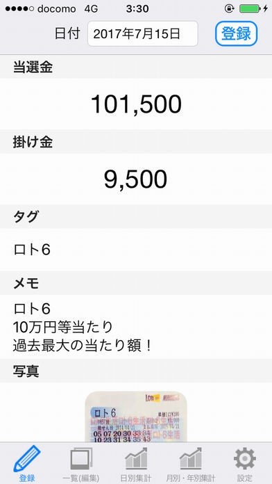 App Storeより引用みなさんは宝くじやロト等で使ったお金を把握していますか?