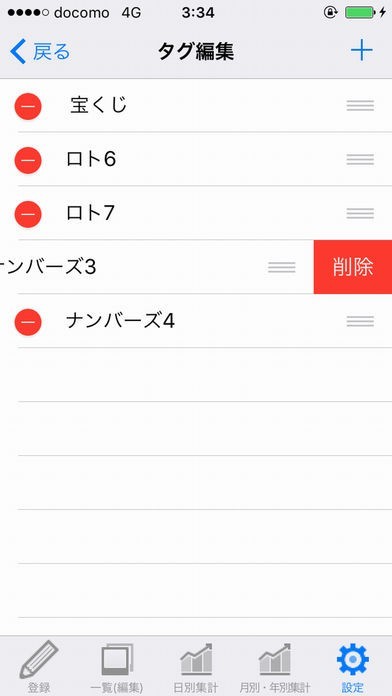 ⑤各タグの左端の赤マークをタップすると、タグが削除できます。