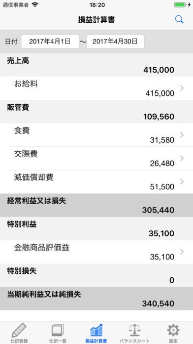 損益計算書とは1年間の経営成績を表す決算書なので、一般の人に関係なさそうですが、このアプリはとてもシンプルな操作だけなので、家計簿として使うのにも大変おすすめです。