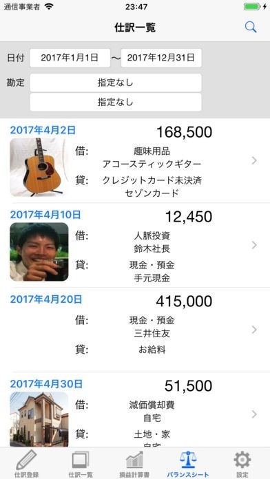 家計簿では1円単位の細かな支出にばかり目が向きがちですが、大きな収入・支出を仕分けすることで、家計に対する意識改革につながります。わからない仕分けや補助科目は写真で設定することもでき、簡単です。