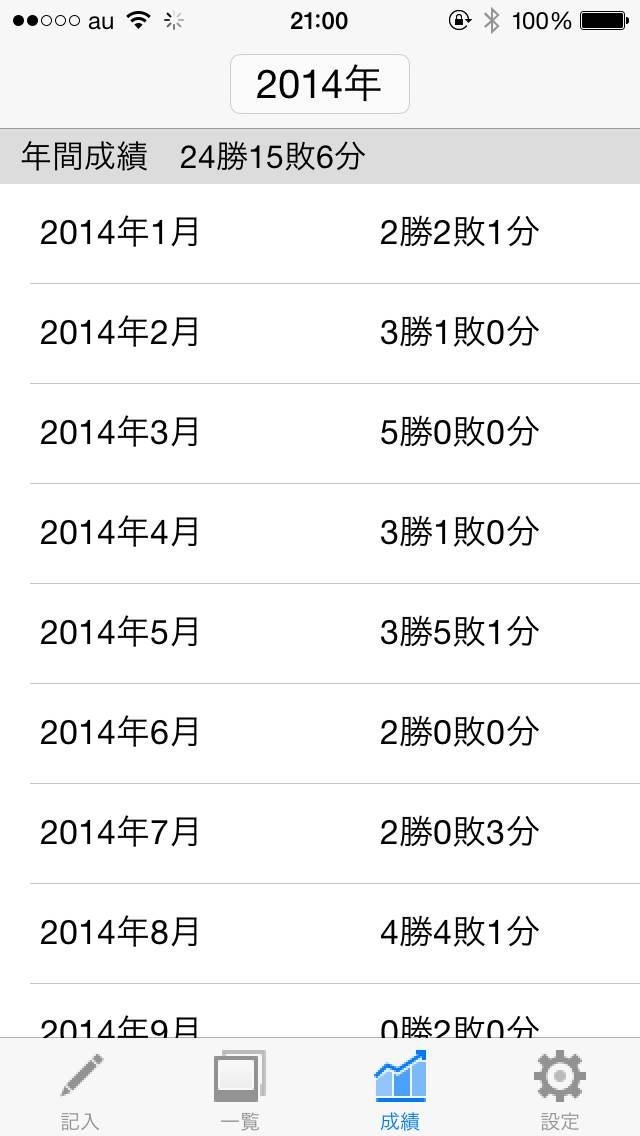 このアプリは過去の試合結果一覧、月間成績、年間成績を見やすい形で表示してくれます。