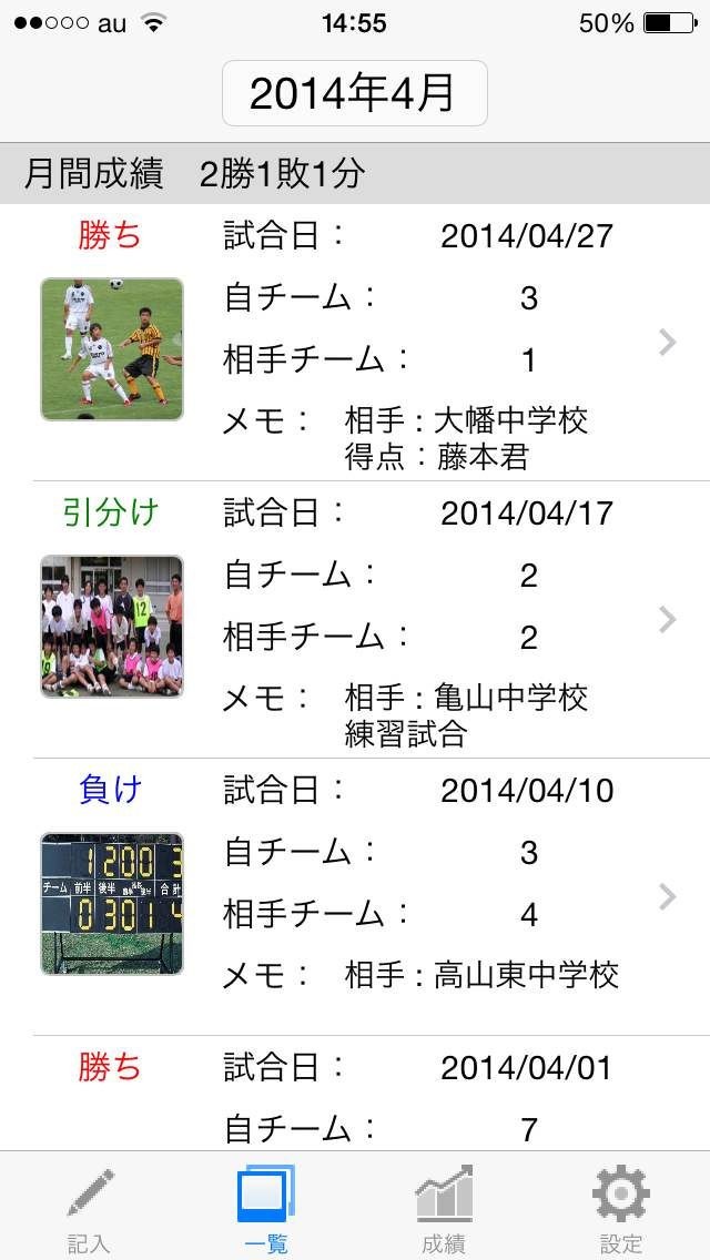 サッカーDiary(スコア・勝敗 管理帳)のスクリーンショット