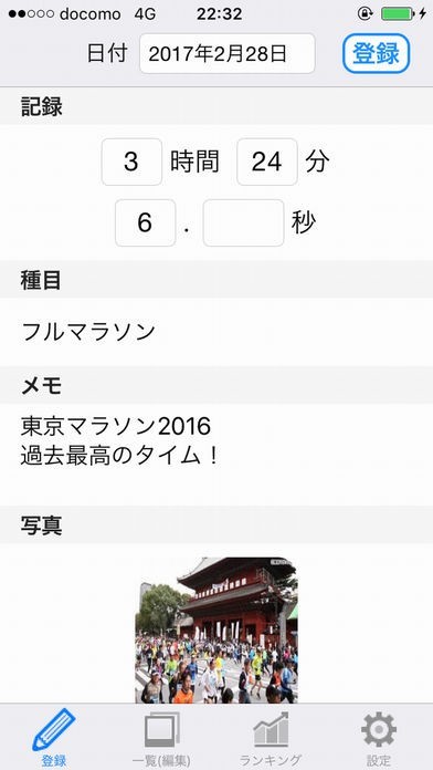 タイムを記録するだけではなく、画像やメモを残せるので日記感覚で便利です。