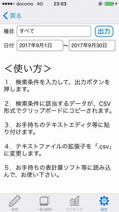 このアプリでは日記として記録したタイムを集計する機能があります。ランキングを表示すれば過去の自己ベストがすぐに分かるので、自己ベスト更新を目指して日々の練習に取り組みましょう。