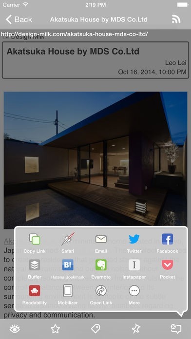 お気に入りの記事をSNSでシェアすることができる機能が搭載しているので、TwitterやFacebookで友達や家族と記事を簡単に共有することが可能となっています。