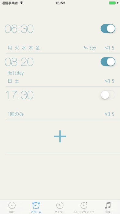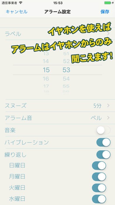 バイブレーションやスヌーズ等の多彩な機能が用意されているので、本格的な目覚ましアラームとして利用していけます。スマホ内の楽曲をアラーム音に出来るのも利点でしょう。
