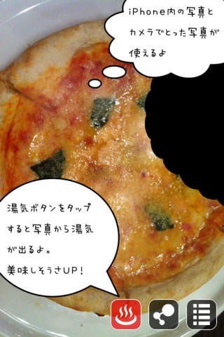 毎日のランチ写真もユニークに変身!湯気ボタンを使えば作りたてのアツアツ感も再現可能!