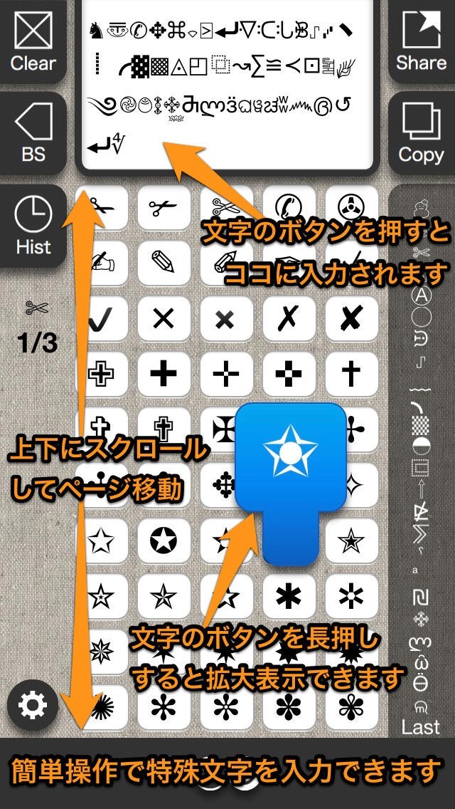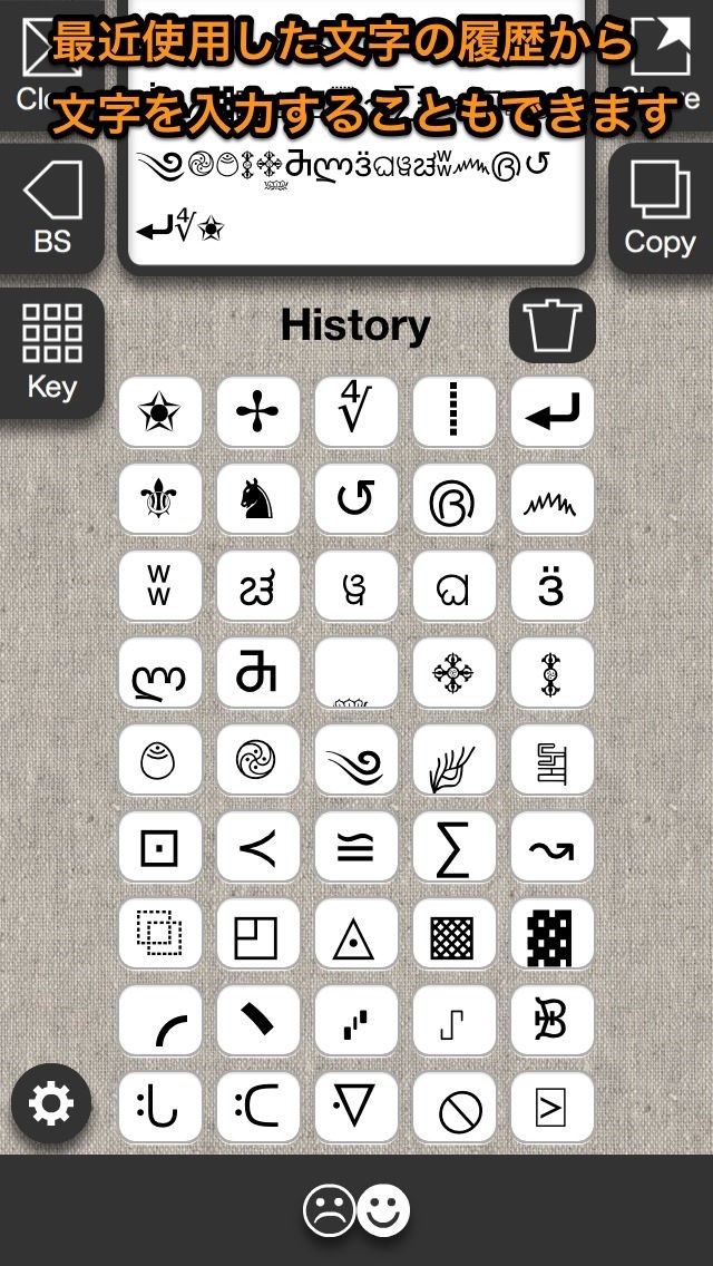 「特殊文字」では珍しい絵文字が沢山収録されたアプリです。ハートマークや星マークも通常とは異なり、おしゃれな形をしています。使い方は簡単で、アプリを起動したらマークや形•英字などのジャンルから好きなのをタップします。あとは使用したい絵文字をタップするだけです。アプリにはメッセージ機能が搭載しているので、友人などに送るメッセージを入力してから絵文字を使用することが可能です。簡単にお気に入りの絵文字を使用したい場合には履歴を使用する事で探す手間が省けます。