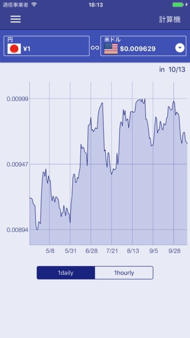 1日および1時間ごとの為替レート変動をグラフとして表示することができます。両替や為替予約などのタイミングを計るにあたって活用することができるでしょう。また商社マンなど為替レートに敏感なビジネスマンにとっても嬉しい機能となっています。