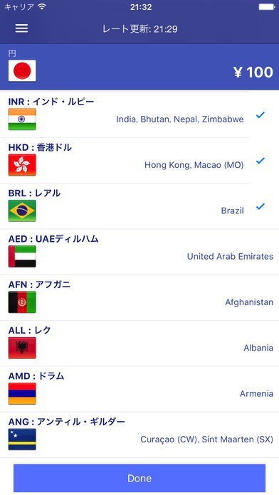 メイン通貨に設定された貨幣の金額を、ドルやユーロ、ポンドや人民元など複数カ国の通貨レートに変換して表示してくれます。リスト形式で総チェックできるので一度に複数カ国に滞在しなければいけないような場合にも大変便利です。