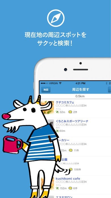 7,000件以上のスポット情報から現在地周辺のスポット検索はもちろん、スポットにチェックインしたり、クチコミや写真の投稿もできちゃう楽しくて便利なアプリです!