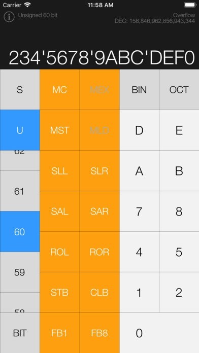 「16進電卓」は、コンピュータの世界で用いられる特殊な計算をするためのアプリです。16進数や8進数といった通常の電卓ではできない演算も、OCTやHEXと書かれたボタンを押すだけで答えを出すことができます。他にもビットの操作や演算もこれ一つでこなせるので、プログラミングの作業を捗らせてくれます。