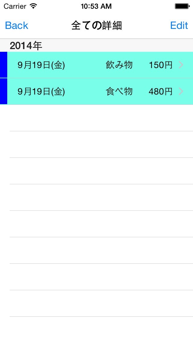 日付をつけて登録可能前日の支出と比較できるから節約にも最適
